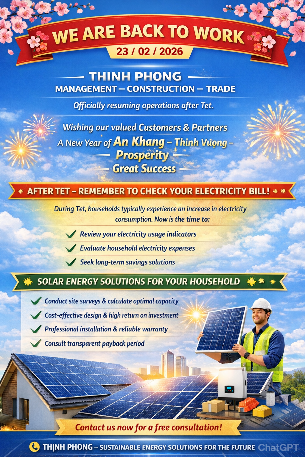 Today, February 23, 2026, THINH PHONG MANAGEMENT, CONSTRUCTION AND TRADE COMPANY LIMITED officially resumes operations after the Tet holiday.