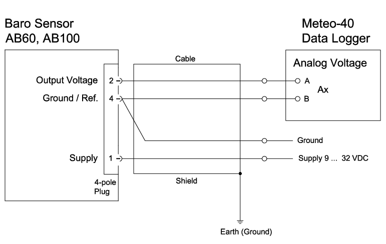 | Sensor | Plug Pin No. | Ammonit Cable Wire Colour | Meteo-40 Analog Voltage |