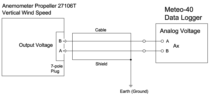 In case of ascending air flow Pin B of the anemometer plug is the positive pole.