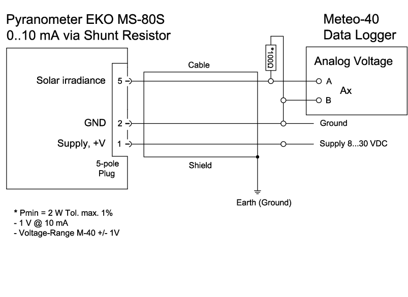 | Sensor | EKO Wire Color | Meteo-40 RS-485 Master | Sensor Supply | |