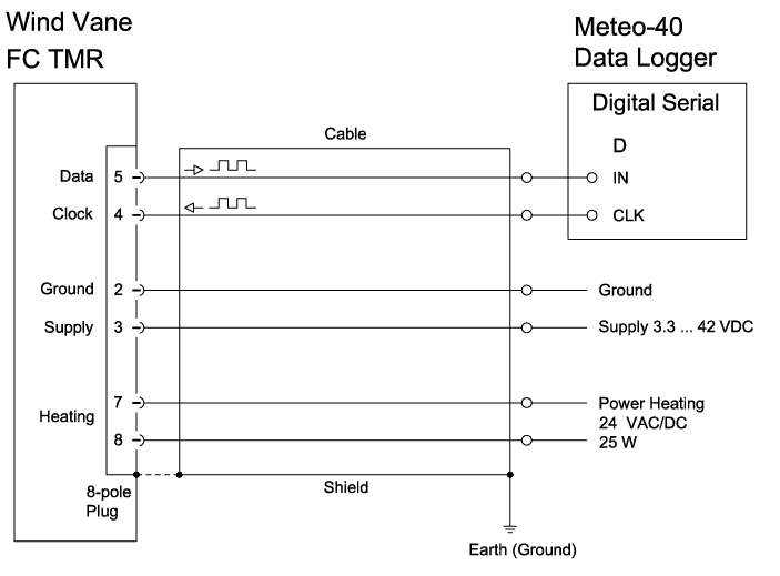 | Connection | 8-pole plug connection for shielded cable in the shaft |